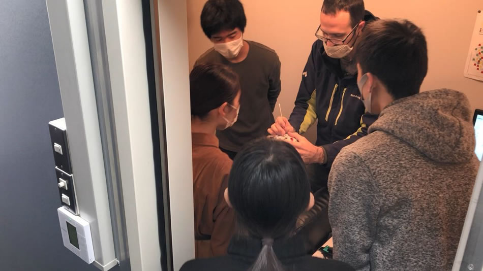 できる限り、授業に学生を巻き込むための工夫をしました。私は実験のデモを何度も見てきていますが、その場にいるときには「なるほど」「よし、分かった」と思っても、次の日になると全部忘れていたのです(笑)。それで、基本的には学生全員に、被験者が頭に付ける電極を装着してもらい、その上で、私が横についてやり方を説明しました。