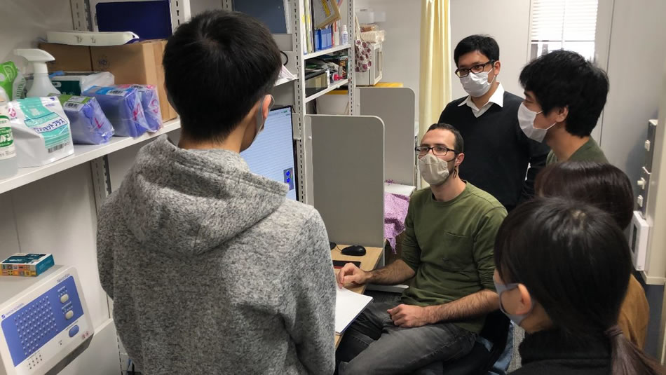 - 私は脳波を測定し分析する実験の指導をしました。太田先生は、MRIやMEGなど、高い費用のかかる実験に関してはとても経験豊かな先生です。しかし、私が専門とする脳波の実験は他の実験方法よりは費用が比較的安めで、先生はそれほど豊富な経験を持っているとは言えませんでした。その意味では、私たちは、お互いに助け合いが少しはできたと思っています。また、授業中に私が間違えたりした場合は、先生が間に入り、正しい方向へ修正してくださいました。